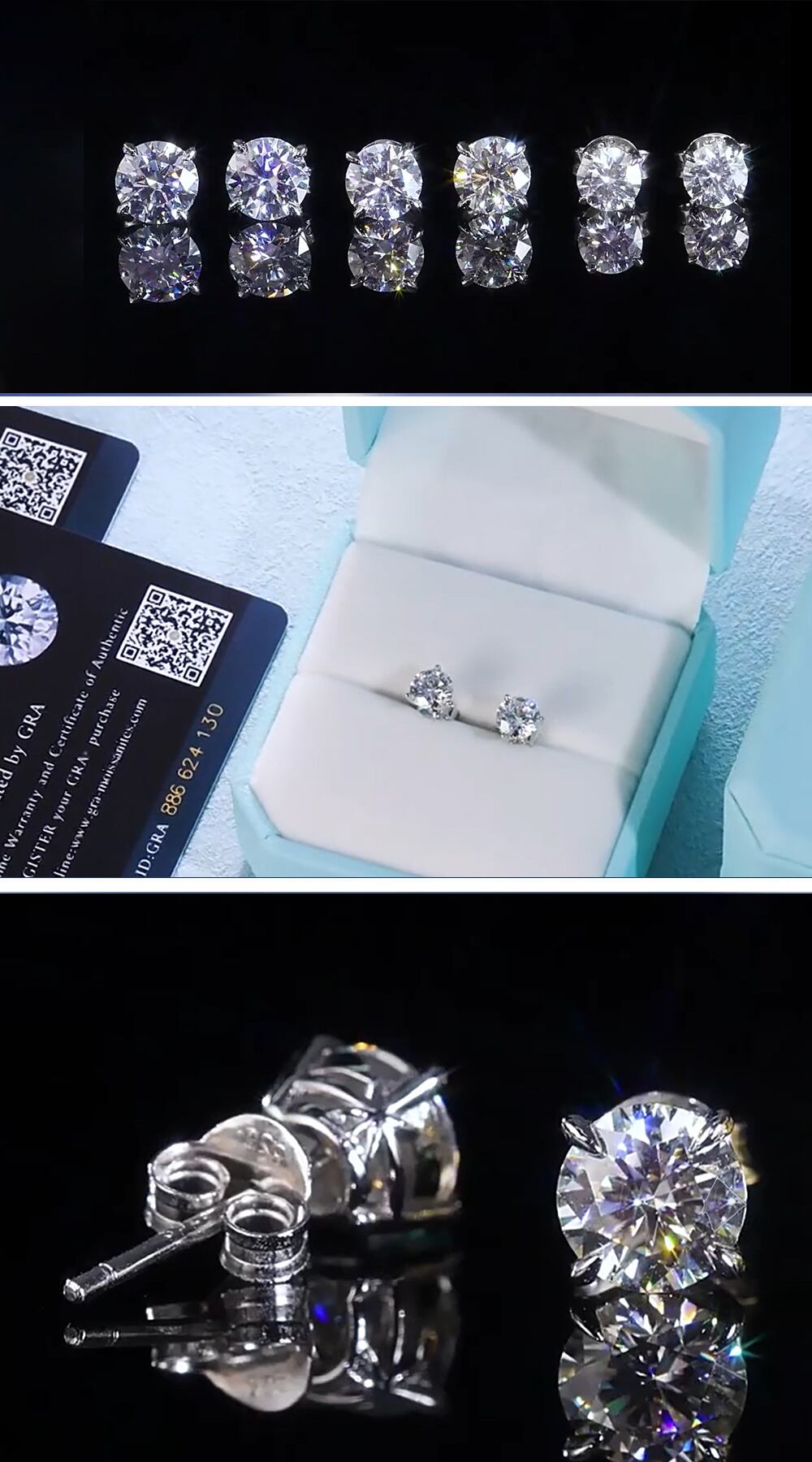 輝くモアサナイト大粒4本爪ピアス(両耳用)【GRA認定書付き】