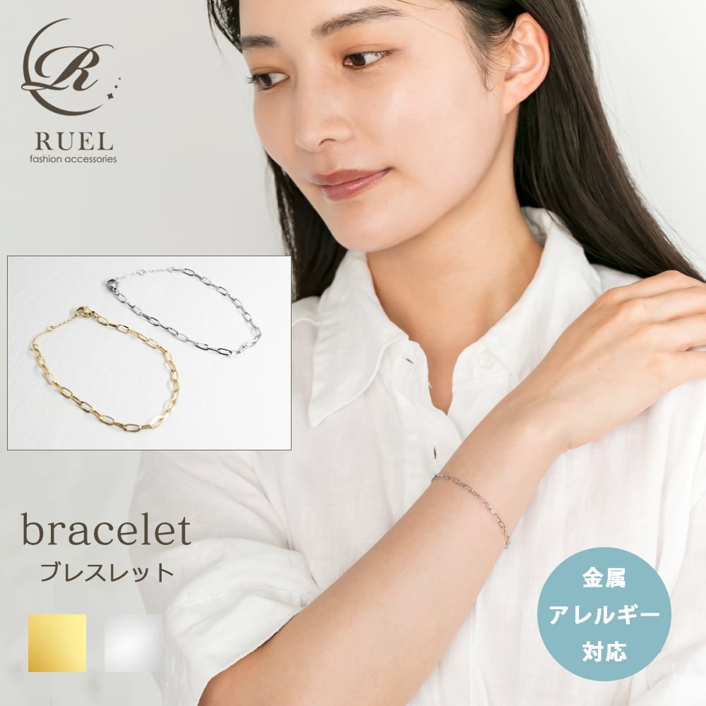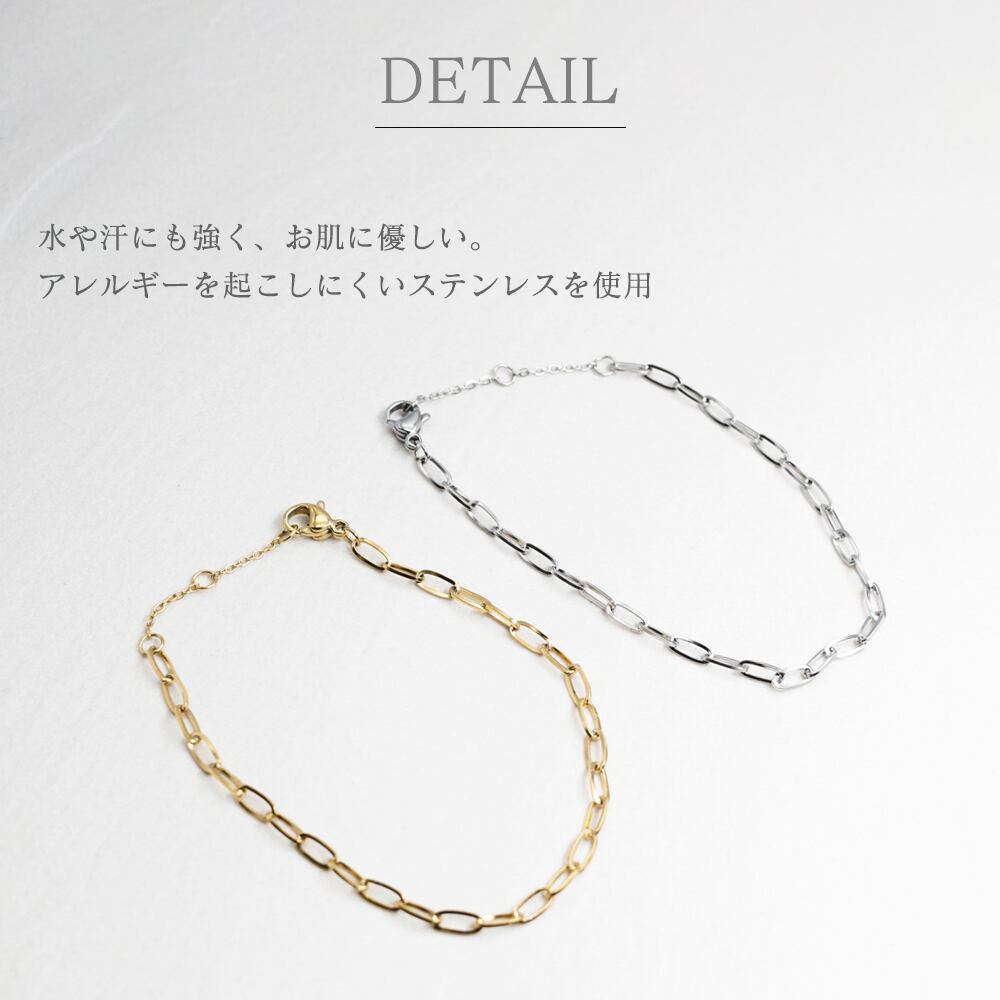どんなスタイルにも馴染むシンプルなチェーンブレスレット。