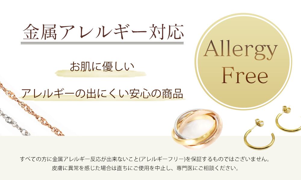 お肌に優しくアレルギーを起こしにくいサージカルステンレス(316Lステンレス)を使用。