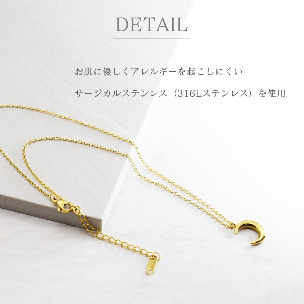 月が満ち欠けていく様子を表現した三日月デザインのネックレス。