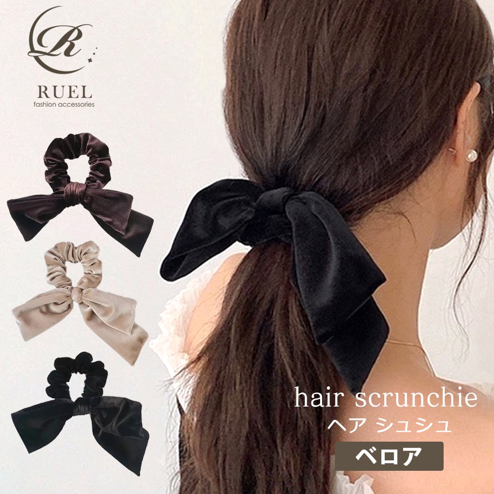 ベロア リボン シュシュ リボンシュシュ ベロアシュシュ ヘアアクセ シュシュ ヘアタイ ヘアゴム ヘアカフ レディース 秋 冬 まとめ髪 ポニーテール ブラック ブラウン ベージュ 10代 20代 30代 40代 50代 ギフト プレゼント ラッピング RUEL ルエル ha-244-099 | RUEL(ルエル)